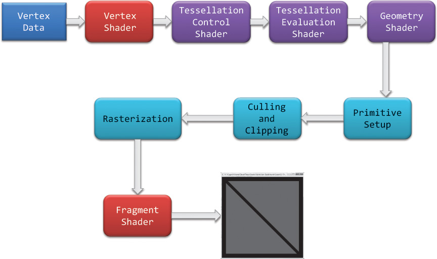 - OpenGL 有六个着色器阶段,顶点(vertex)和片段(fragment)着色器是最常见的。